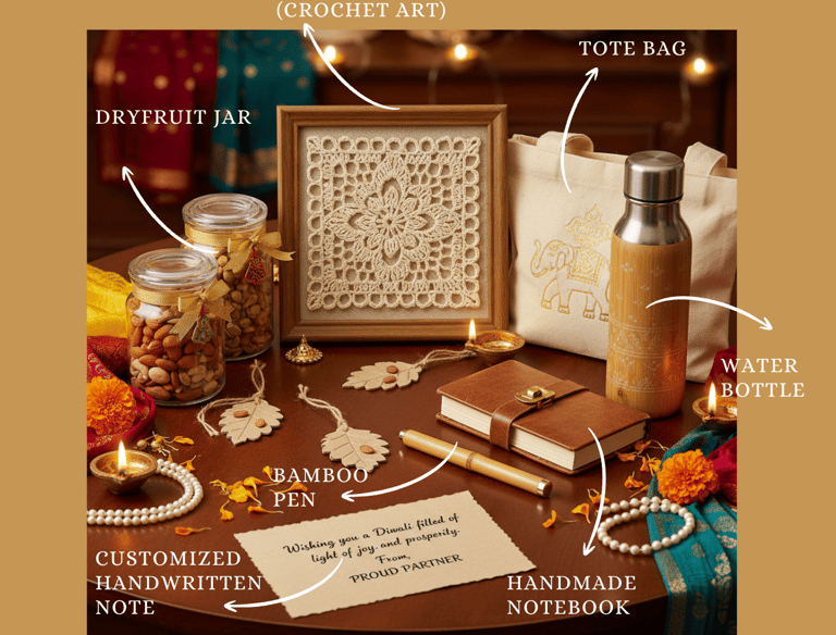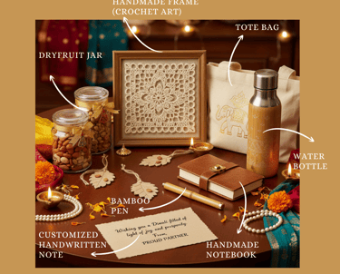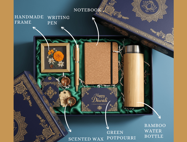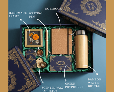 Elegant Diwali hamper featuring premium, sustainable, beautifully handcrafted festive essentials.
